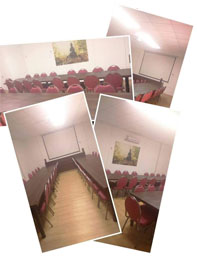 Sala de conferencia "Piera", habilitado para eventos empresariales, seminarios, talleres y otros. Cuenta con proyector Epson HD, telón, sistema de audio, meson para coffee break y baño.